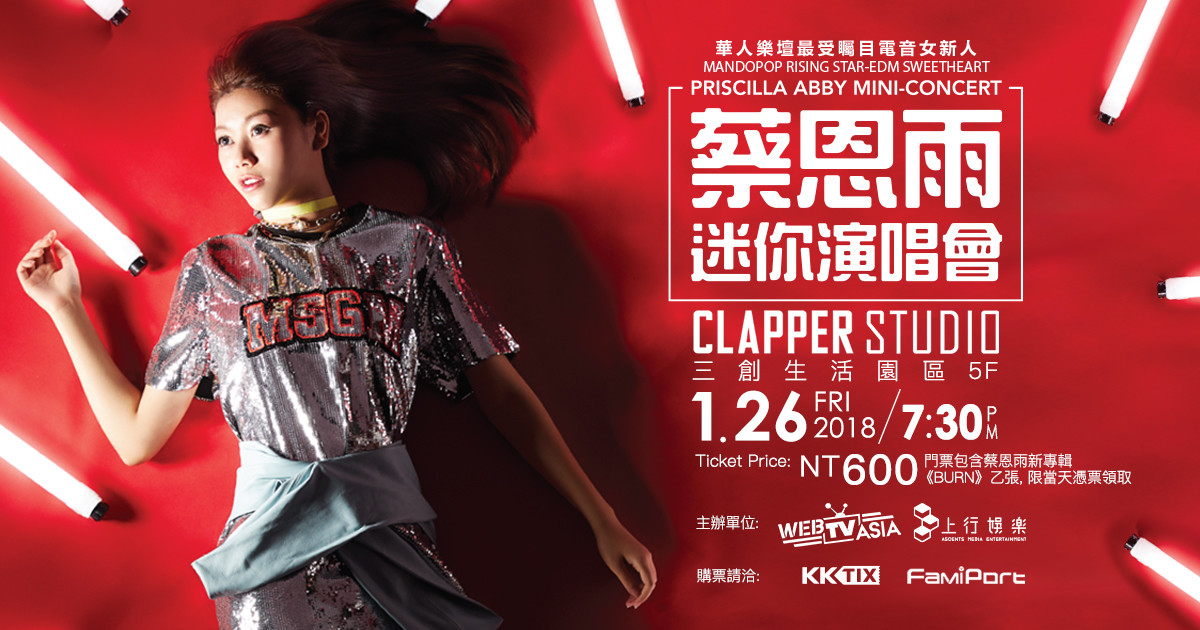 2017年,華人樂壇最受矚目,電音公主Priscilla Abby蔡恩雨出道不到半年,旋即在2017年底舉辦個人演唱會,2018年初即為亞洲各地的“雨粉”捎來好消息,宣佈蔡恩雨將於1月26日在臺北舉辦她個人迷你演唱會。